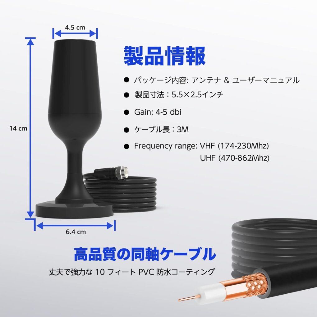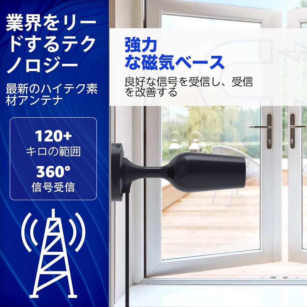 DTB TECH社の『地デジ 室内アンテナ 最強テレビアンテナ 120KM受信範囲 4K HD対応 360度全方位受信 UHFアンテナ VHF対応 磁力固定 避雷対策済 設置簡単』を製品を購入しました。